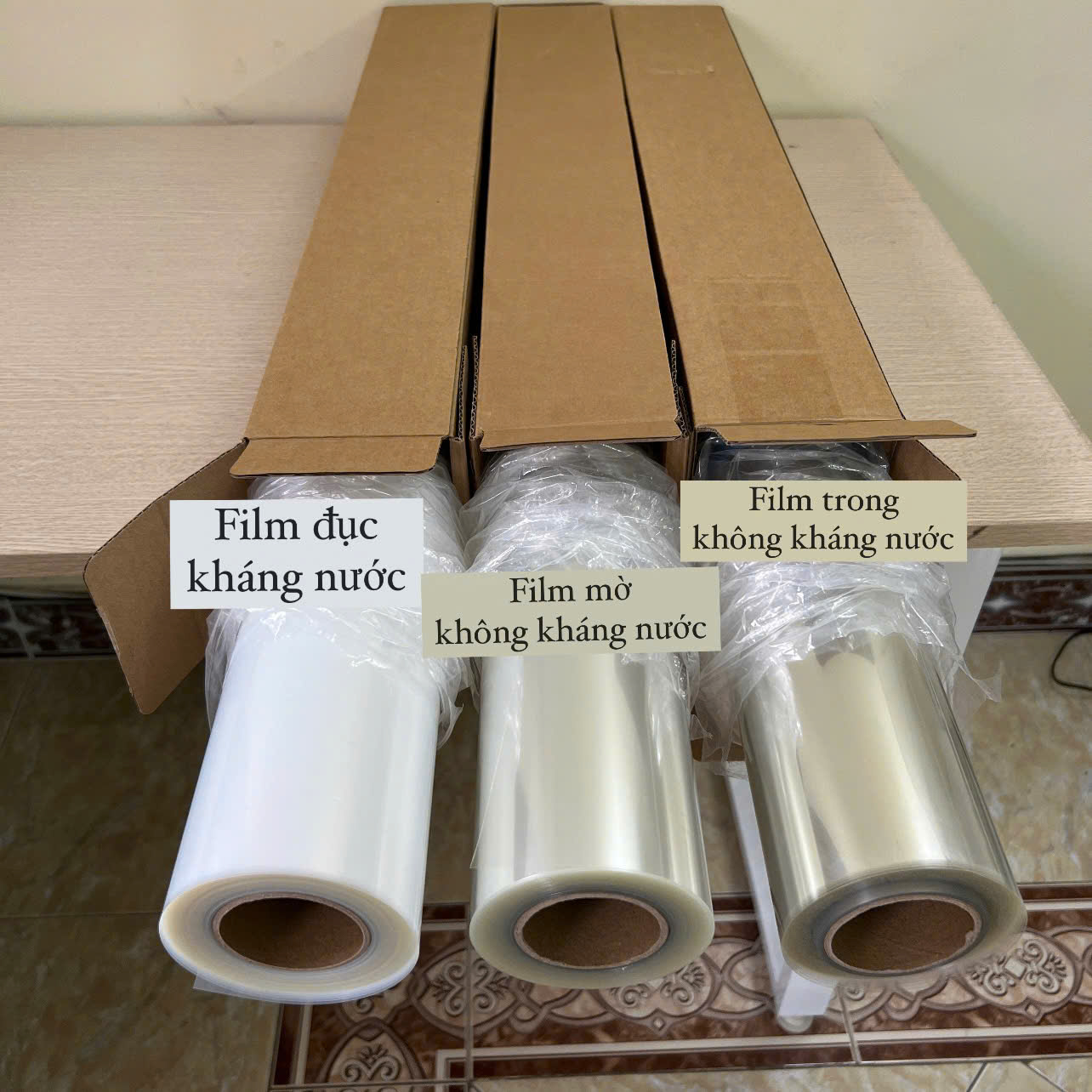 Phim có nhiều loại như: trong suốt và trắng đục, loại kháng nước và không kháng nước.