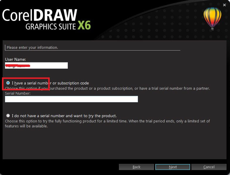 Đa số mọi người thường bỏ qua bước này nhưng nó khá là quan trọng nếu không sau khi sử dụng một thời gian Phần mền CorelDraw X6 sẽ bị khóa và không sử dụng được .