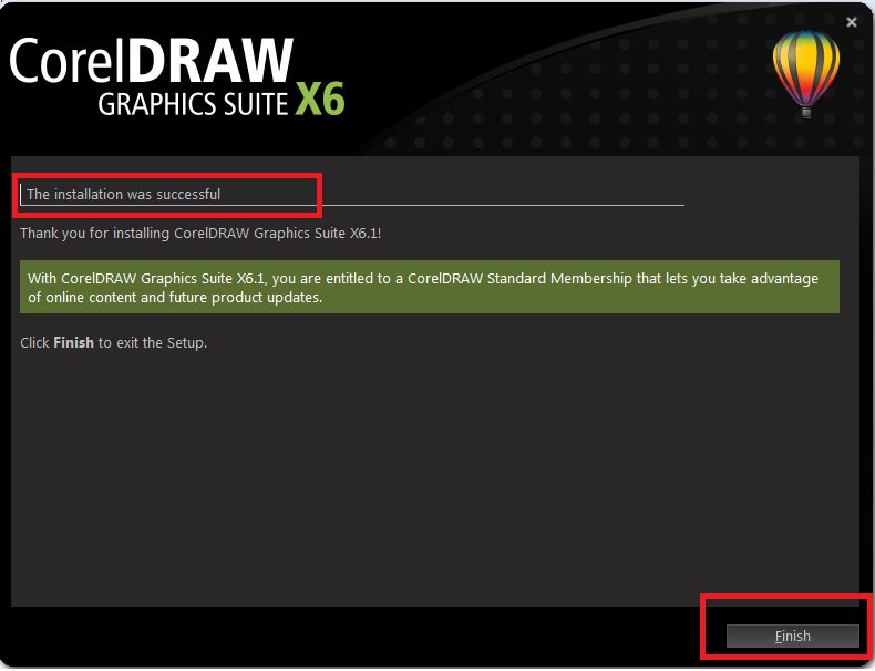 Vậy là các bạn đã hoàn thành các bước cài đặt CorelX6, và hãy nhấn Finish để hoàn thành.