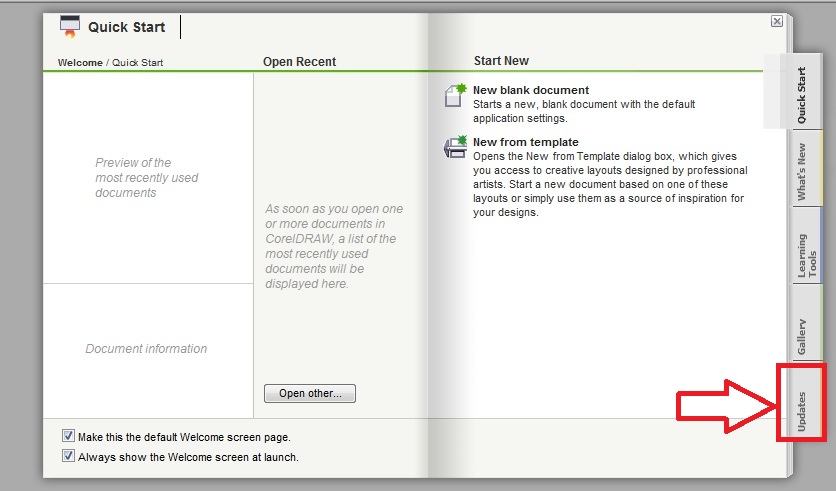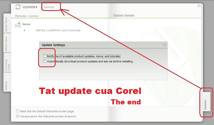 Vào phần Updates tắt tự động update của Corel .