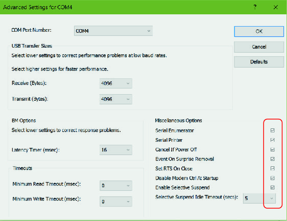Vẫn ở bảng "USB Serial Ports (COM) Properties" bạn bấm chọn vào "Advanced" và thiết lập theo bảng bên dưới