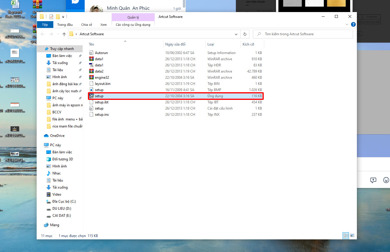 Tiếp tục mở thư mục Artcut graphic chạy file SETUP.