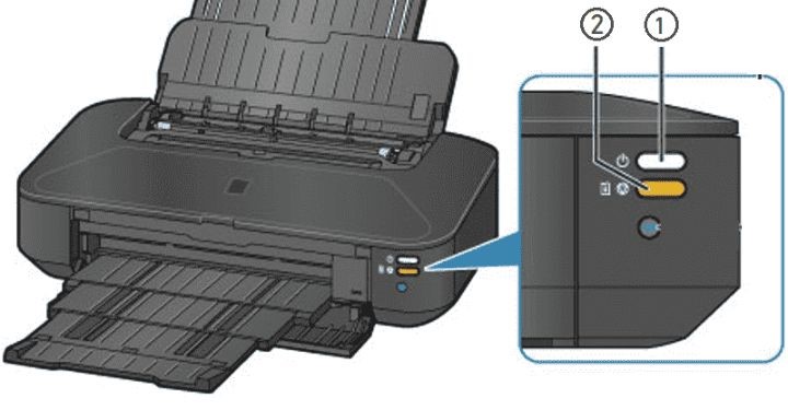 Máy in sẽ báo lỗi bằng cách nháy đèn luân phiên. Cụ thể: Đèn nguồn (1) và đèn cảnh báo (2) nháy luân phiên 7 lần. Sau đó, đèn dừng trong khoảng 1-2 giây và tiếp tục chu kỳ nháy. Khi gặp tình trạng này, máy in sẽ không thể thực hiện lệnh in cho đến khi được reset chip.