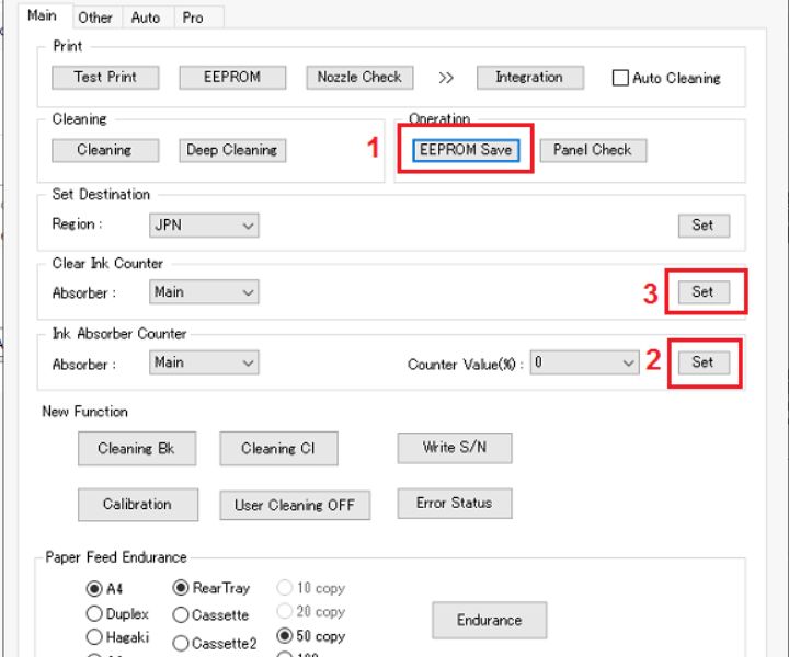 - Click nút "Main" => thao tác theo thứ tự như hình hướng dẫn dưới đây => khi hộp thoại xuất hiện bấm nút "OK"