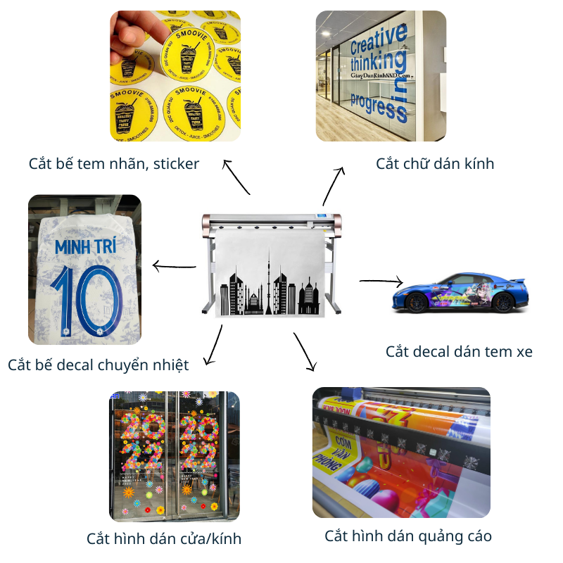Máy được ứng dụng trong máy cắt decal cho ngành công nghiệp ký hiệu, ngành công nghiệp may mặc, thiết kế và ngành công nghiệp bao bì.