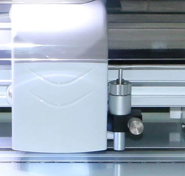 Máy cắt mini mới này có camera CCD, cắt theo đường viền tự động, lực cắt tối đa 600g, có thể cắt nhiều loại vật liệu. Ví dụ như tem nhãn, phim truyền nhiệt, phim bảo vệ điện thoại và nhãn dán từ tính. Ngoài ra với Bluetooth, có thể kết nối với điện thoại di động của bạn, máy cắt mini có trở thành 1 chiếc loa mini. Bạn có thể thưởng thức âm nhạc của mình trong khi cắt.