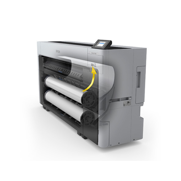 Máy in chuyển nhiệt Epson T7730 có hệ thống cuộn kép giúp giảm khối lượng công việc và tăng năng suất. Với tính năng tự động lựa chọn vật liệu và kích cỡ, cuộn thứ hai có thể được dùng để thu giấy, giúp máy hoạt động liên tục mà không cần giám sát. Cảm biến phát hiện mép giấy và nạp giấy tự động cho phép người dùng nạp giấy dễ dàng và tiện lợi hơn.