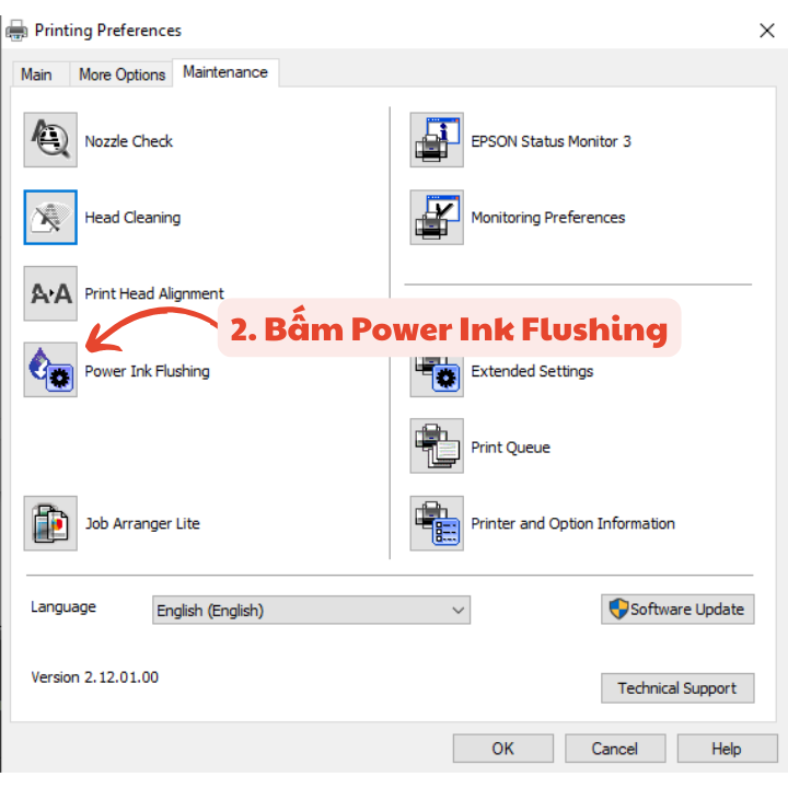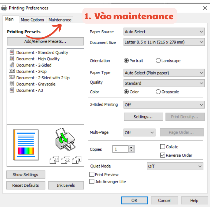 Ở trên trình điều khiển máy in, chọn Maintenance