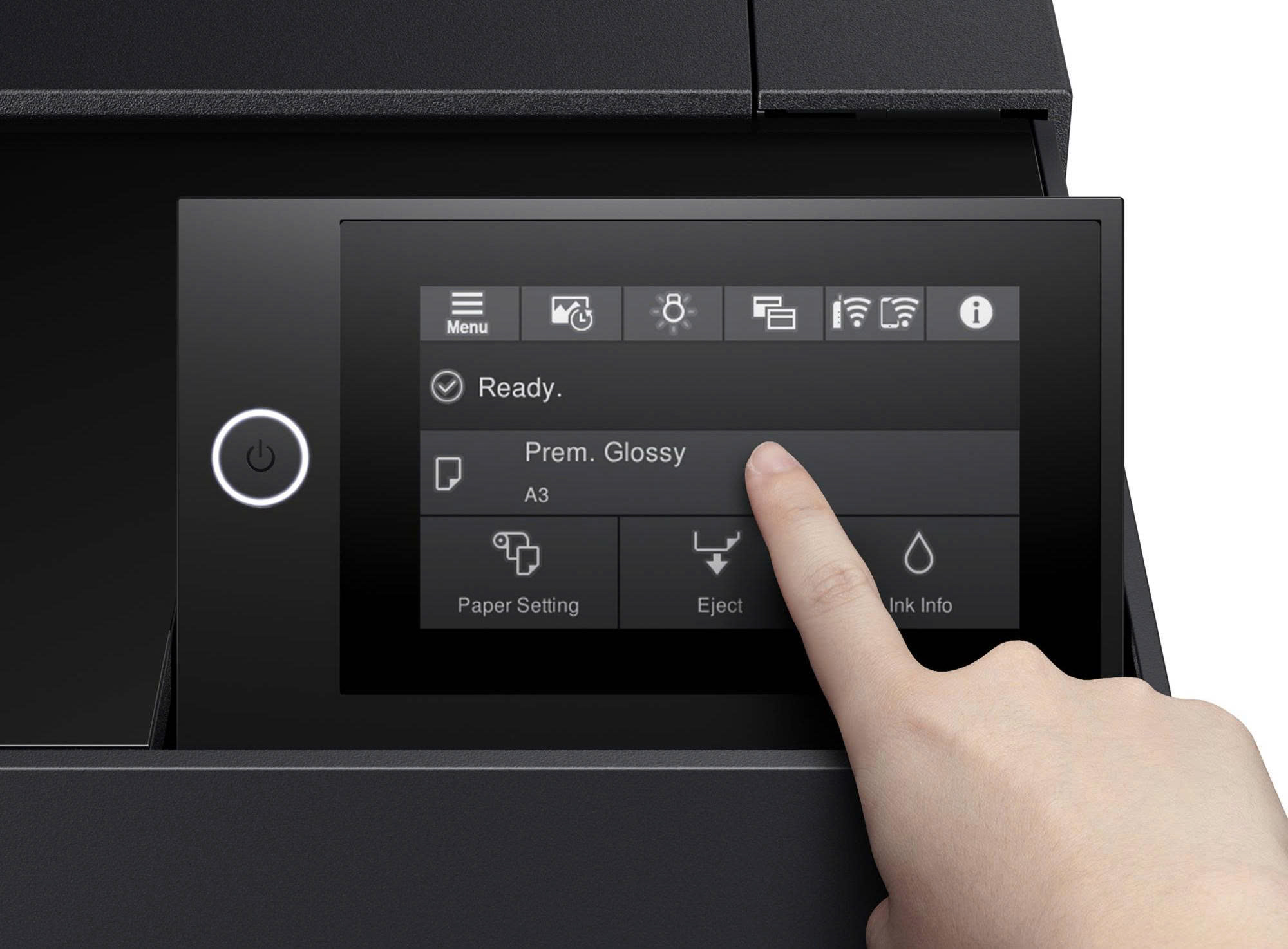 Thiết kế máy nhỏ gọn hơn 30% so với dòng trước, đi kèm giao diện màn hình cảm ứng hiện đại, hỗ trợ đa dạng vật liệu từ giấy ảnh bóng, lụa, fine-art đến giấy cuộn (roll).