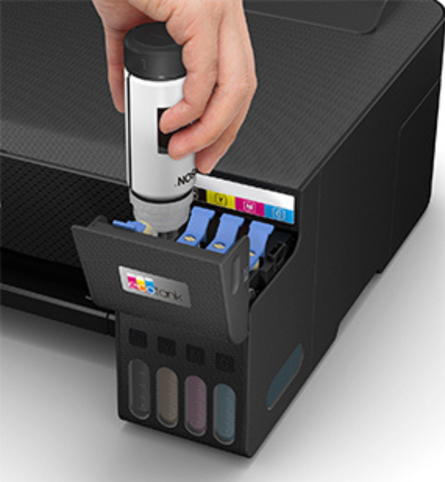 Máy in màu gia đình Epson L1210 là dòng máy in được Epson cho ra mắt để thay thế cho Epson L1110 thuộc dòng sản phẩm EcoTank. EcoTank là dòng máy in phun của Epson với bình mực thiết kế phía trước thân máy giúp dễ dàng bơm mực và theo dõi lượng mực, các bình mực thay thế cũng có thiết kế không bị đổ ra ngoài với vòi đổ riêng, tự động ngừng khi mực trong bình đầy. Dòng sản phẩm cũng ghi điểm trong mắt khách hàng khi bình mực đen luôn có dung tích cao hơn những màu còn lại.