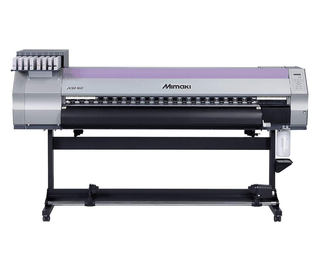 Máy in tem nhãn decal khổ lớn thường sử dụng dòng máy in phun của hãng Mimaki, Roland, Mutoh... nhưng Mimaki được đánh giá cao vì độ ổn định, dễ sửa chữa và nhiều tính năng vượt trội, 2 trong 1 máy in kết hợp cắt bế tự động, hệ thống sấy kiểm soát nhiệt độ trong quá trình in.