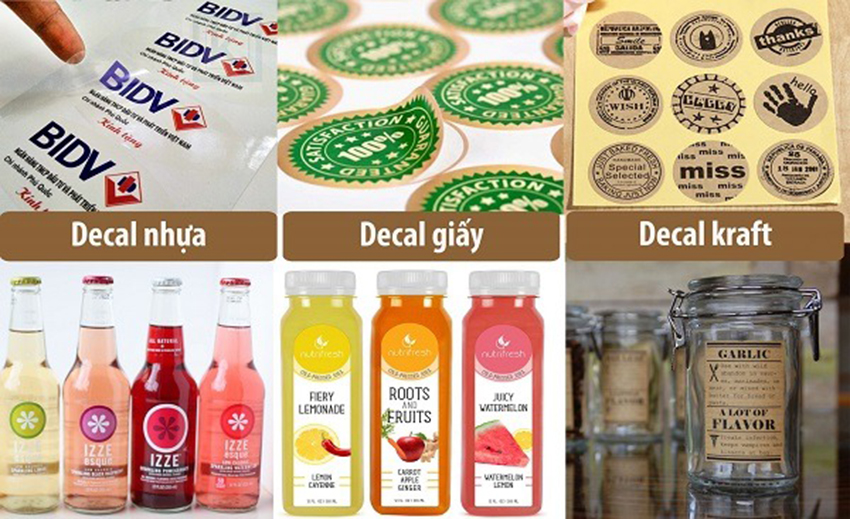 - Decal nhựa trong: Loại decal này có thể nhìn được xuyên thấu thông tin sản phẩm, thường sử dụng cho các sản phẩm ngành dược, thực phẩm.