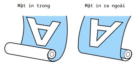 Đặt mặt in vào vị trí bề mặt in ở bên trong cuộn. “Mặt in vào trong” được khuyến nghị trong hầu hết các trường hợp.