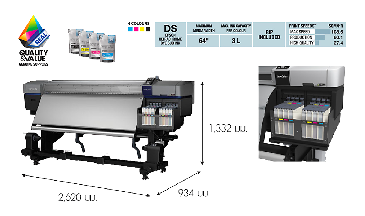 Máy in vải chuyển nhiệt Epson F9330 là máy in chuyển nhiệt 1.6m được nâng cấp từ máy in Epson SC-F9200. Nhằm hướng đến các nhà sản xuất dệt may, studio in ảnh và các công ty hàng hóa quảng cáo, SC-F9330 tăng năng suất người dùng và giảm thời đứng máy. Ngoại hình tươi mới, phong cách màu đen, F9330 giúp văn phòng trở nên hiện đại.