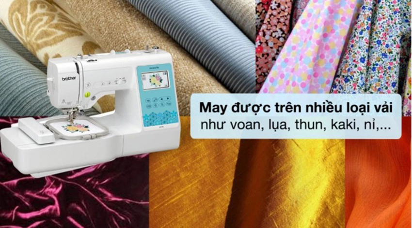 Máy thêu BROTHER M370 May được trên nhiều loại vải Brother M370 may thêu được trên nhiều loại vải khác nhau như voan, lụa, thun, kaki, nỉ, jean, kaki, da mỏng. Tùy từng chất liệu vải bạn chỉ cần thay kim phù hợp là may được.