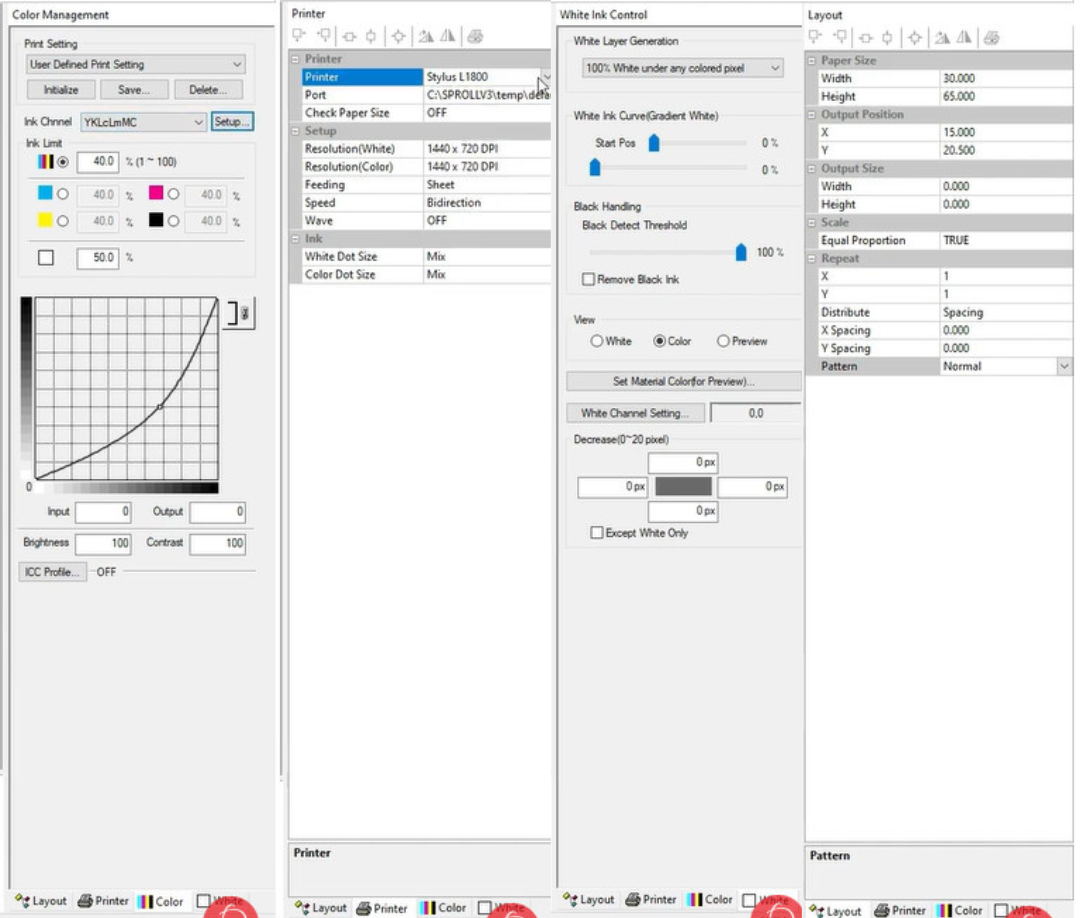 Cấu hình ICC đã được thêm cho Epson L1800, 1390 (đối với mực DTFPRO) và P600 (đối với mực DTFPRO và QUANTUM) - các loại mực khác cũng có thể hoạt động tốt với cùng cấu hình