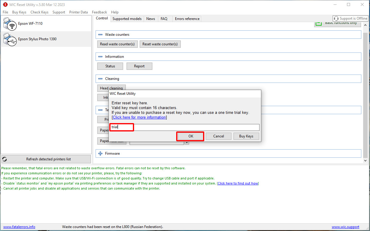 WIC RESET - PHẦN MỀM RESET BỘ ĐẾM MÁY IN EPSON